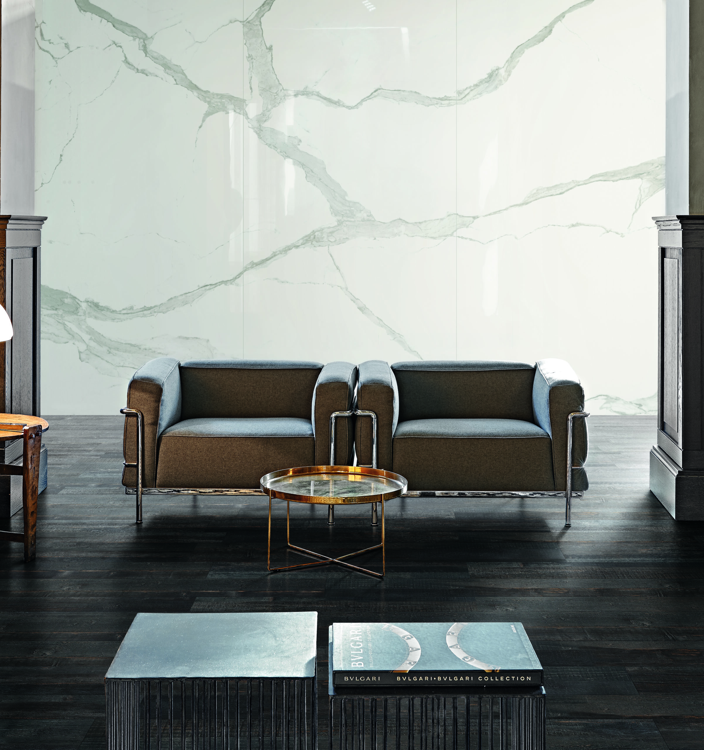 3. Vein match – Vein matching uses different faces of the porcelain panels that will, when placed adjacent to one another, match up to create continuous veins across walls or at seams where the slabs meet. Moderno can work with you to determine the best vein match for your project.