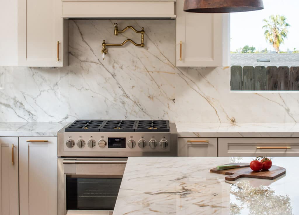We install induction cooktops below our porcelain surfaces for an invisible stovetop.