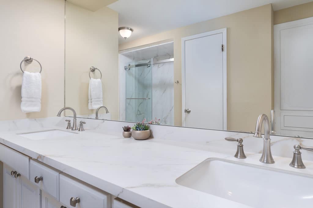 While grout lines and unsightly seams are never non-existent, the size of large-format porcelain (63″ x 126″) covers a substantial area to allow for fewer connections between slabs.