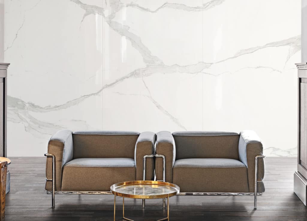 Porcelain replicates any look, whether marble, wood, metal, or patterns by digitizing the most beautiful photographs and printing it directly on the porcelain. Porcelain encapsulates the smoothness, durability, and natural veining of marble without the high maintenance.