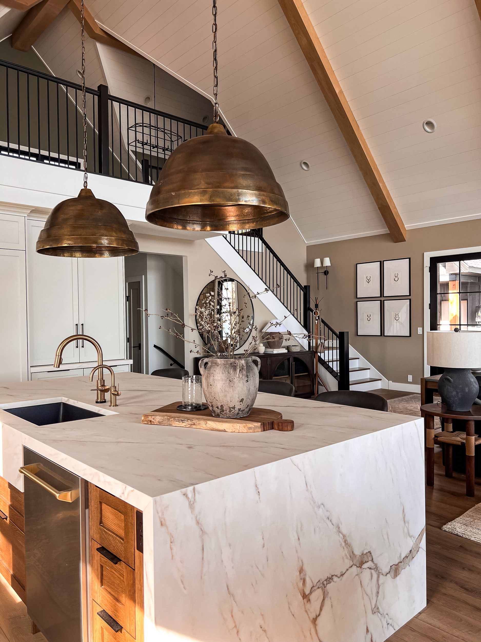 Kitchen Countertops, Waterfall Island, Backsplash, & Fireplace Cladding