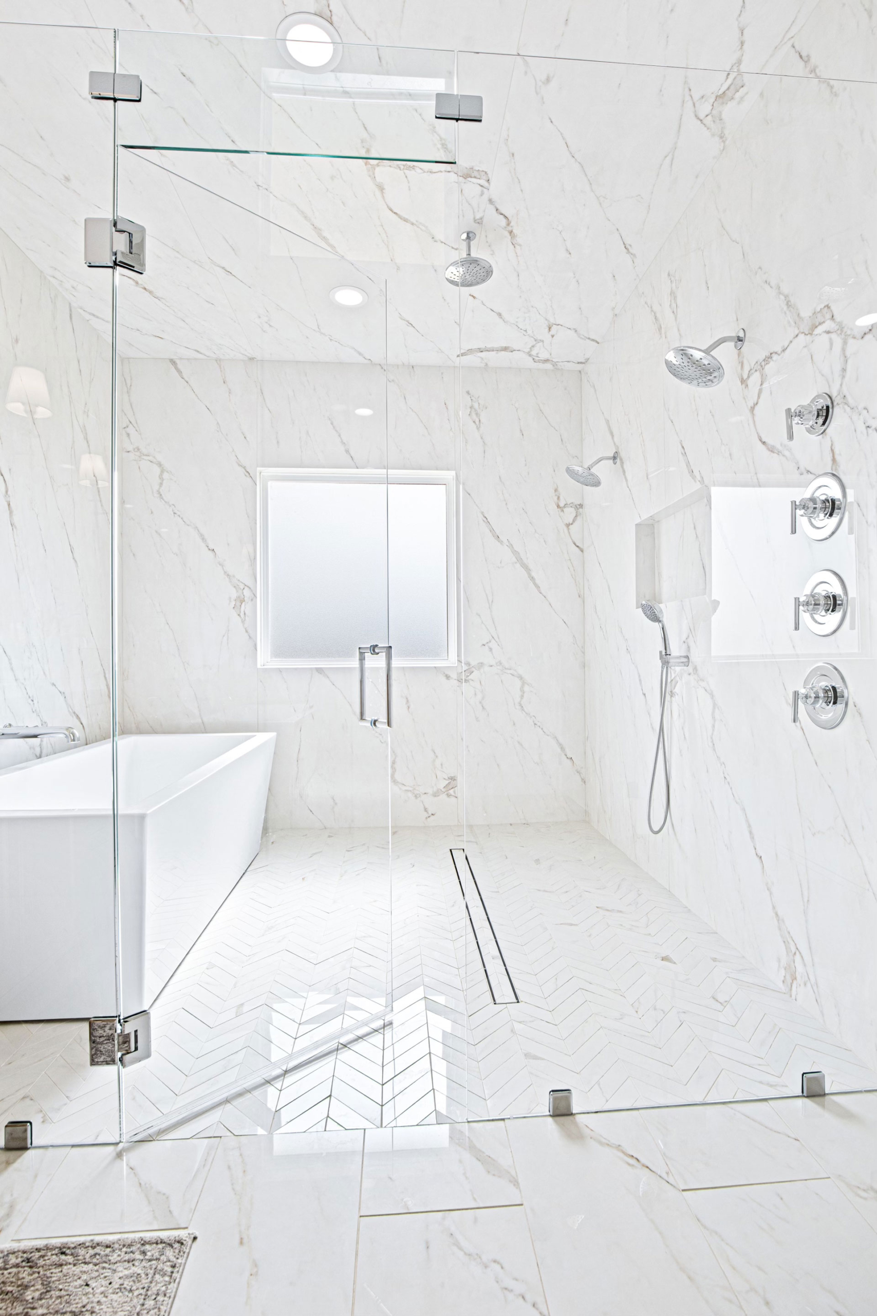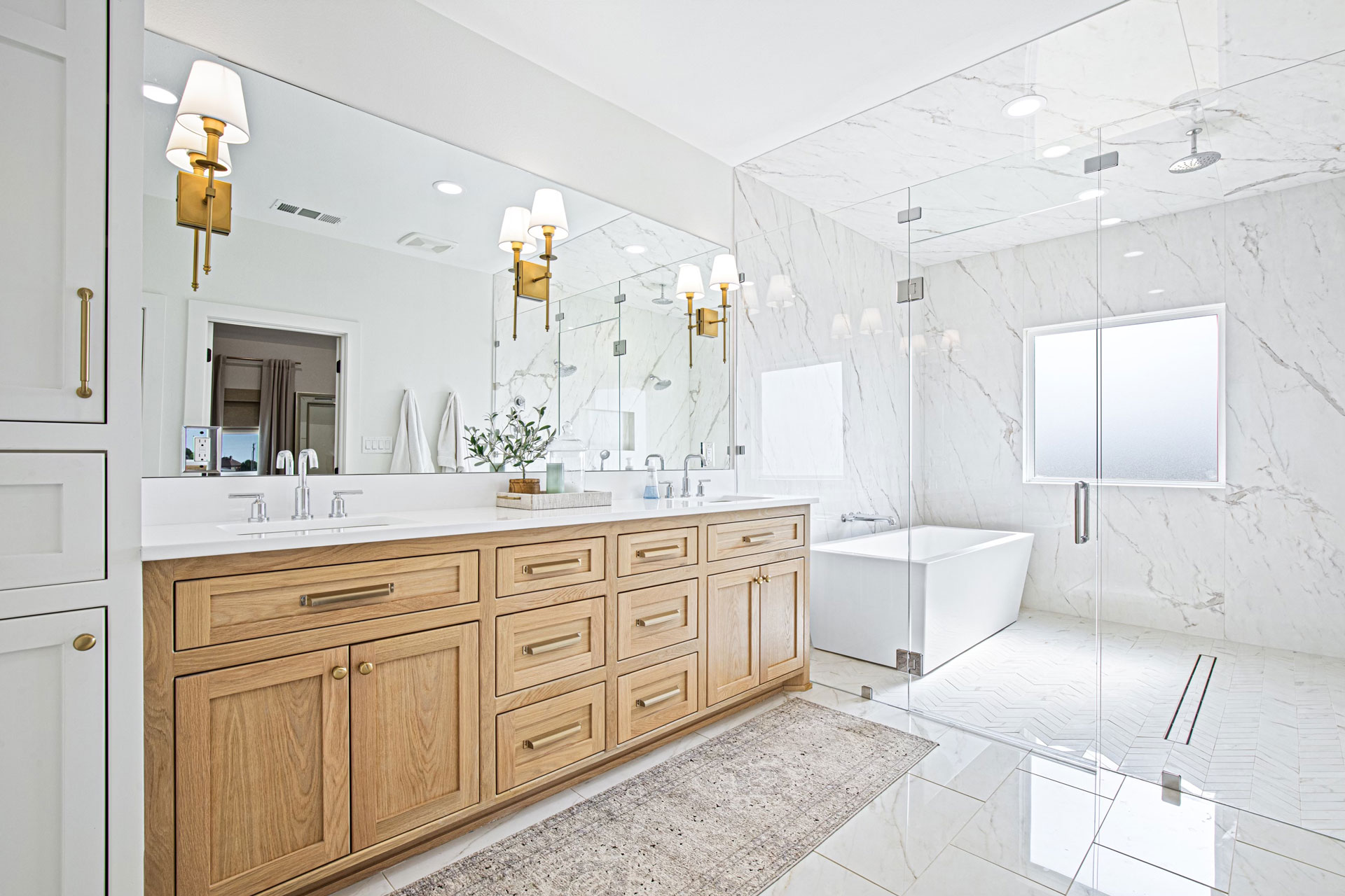 Floor-to-Ceiling Shower Walls and Bathroom Vanity